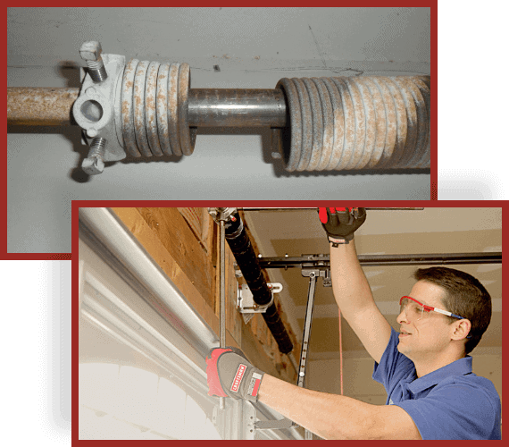 To make the necessary repairs, it is important to know what type of spring is installed on your garage door. There are two types of garage door springs – torsion springs and extension springs.